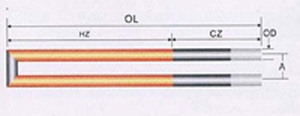 OD:直徑 ;HZ:熱端長度; CZ:冷端長度; OL:總長。A:間距