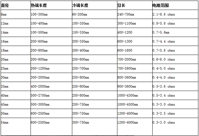 (5) 硅碳棒的溫度分布特性,新出貨時(shí)的檢查規(guī)格為在有效發(fā)熱長度內(nèi)為Δ60℃以內(nèi)才算合格,當(dāng)然溫度分布會隨著其老化而變大的,最終可能達(dá)到200℃。具體溫度分布變化也因爐內(nèi)氣氛、使用條件的不同而不同。。具體溫度分布變化也因爐內(nèi)氣氛、使用條件的不同而不同。